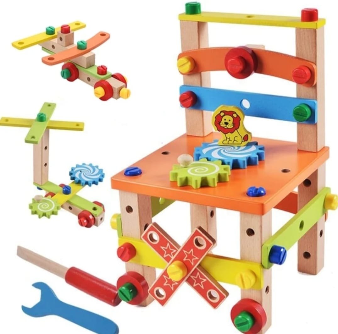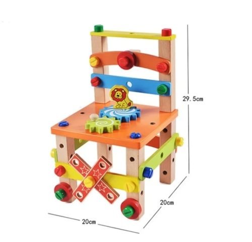 This is a Wooden DIY Assembly Chair Toy designed for kids to enhance their creativity and problem-solving skills.