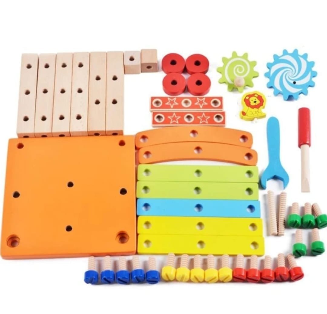📌 Multicolor wooden pieces with screws and bolts