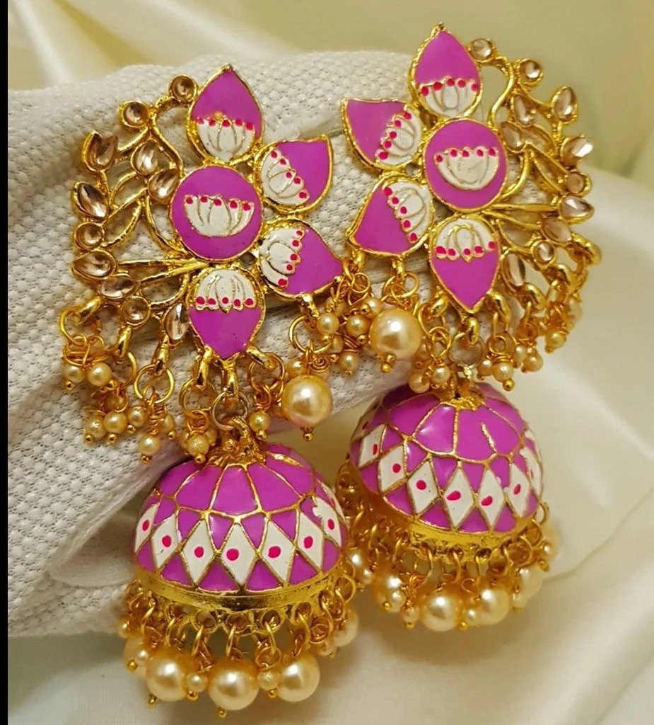Elevate your elegance with the Meenakari Jhumkay, designed to infuse traditional charm and vibrant artistry into your ensemble. These exquisite earrings feature intricate Meenakari work, perfect for adding a touch of sophistication to any outfit. Whether for special occasions or everyday wear, they celebrate timeless beauty and meticulous craftsmanship.