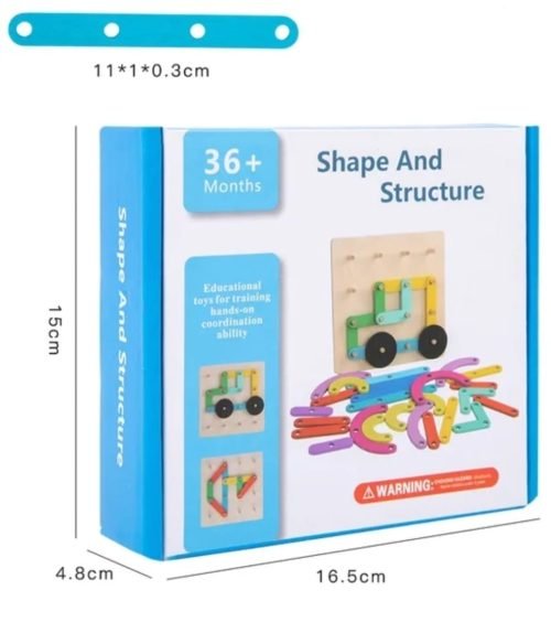 Shape and Structure Educational Toy for children aged 36+ months. The packaging highlights: