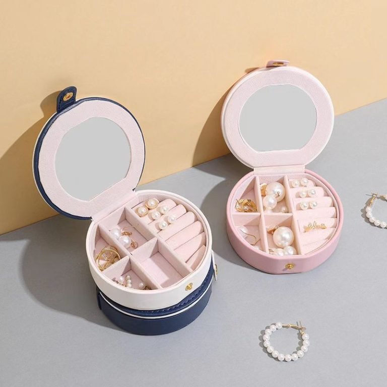 Single Layer Portable Round Jewelry Storage Box With Mirror-01